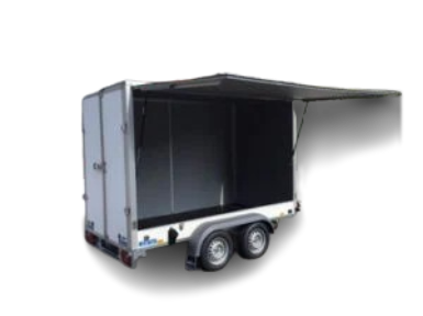 Notre bande-annonce de vente vous facilite la vente à tous égards. Vous pouvez accéder à votre roulotte de vente par une porte d'entrée située à l'avant. Un éclairage de haute qualité est monté dans les consoles galvanisées. La carrosserie du fourgon de vente est constituée d'un panneau sandwich de 30 mm d'épaisseur avec une âme en mousse de polyuréthane, qui est protégée à l'intérieur et à l'extérieur par une tôle d'acier galvanisée avec peinture polyester. Le hayon bien conçu est monté à droite et dispose d'un cache charnière avec protection contre la pluie. De cette façon, vos clients restent toujours au sec. Les vérins à gaz vous soutiennent lors de l'ouverture du hayon. Vous avez des exigences particulières pour votre remorque de vente ? Alors découvrez notre large gamme d'accessoires.